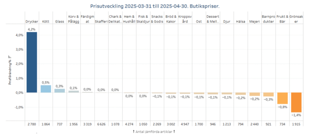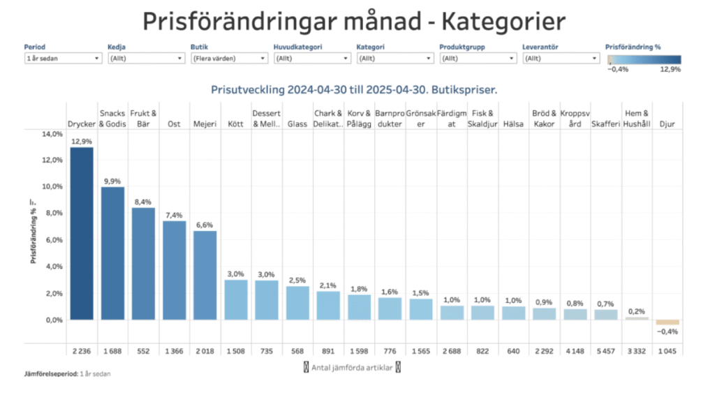 | 6 månader | +2,2% | (+3,0% mat) 40.229 artiklar | EMV +2,1% (10.864 art) |