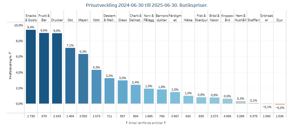 | 6 månader | +1,9% | (+2,6% mat) 40.187 artiklar | EMV +1,6% (11.120 art) |