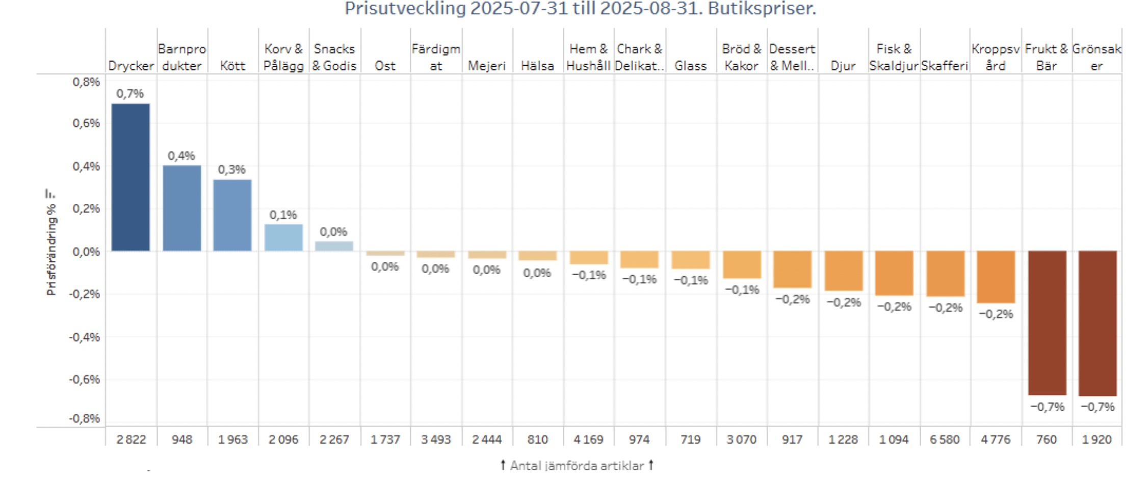 | 6 månader | +0,3% | (+0,6% mat) 41.031 artiklar | EMV -0,1% (11.292 art) |
