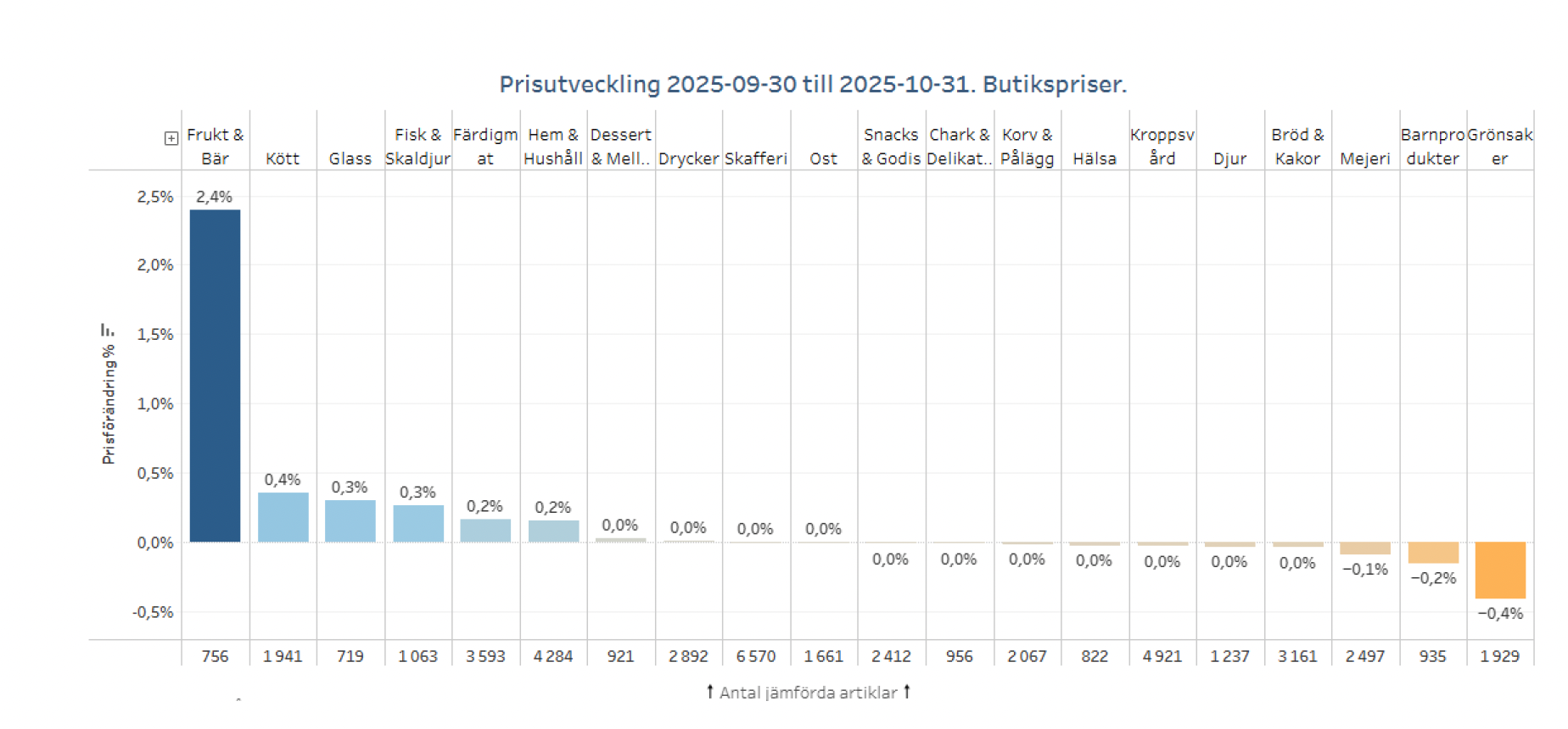 Produktgrupper som ökar/minskar mest senaste året: (31 oktober 2025 mot 31 oktober 2024)