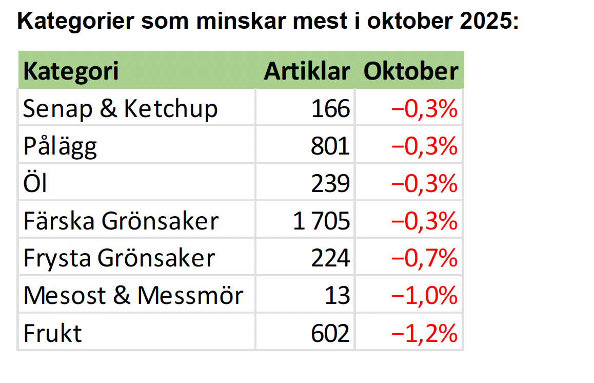 Kategorier som ökat mest i oktober 2025: