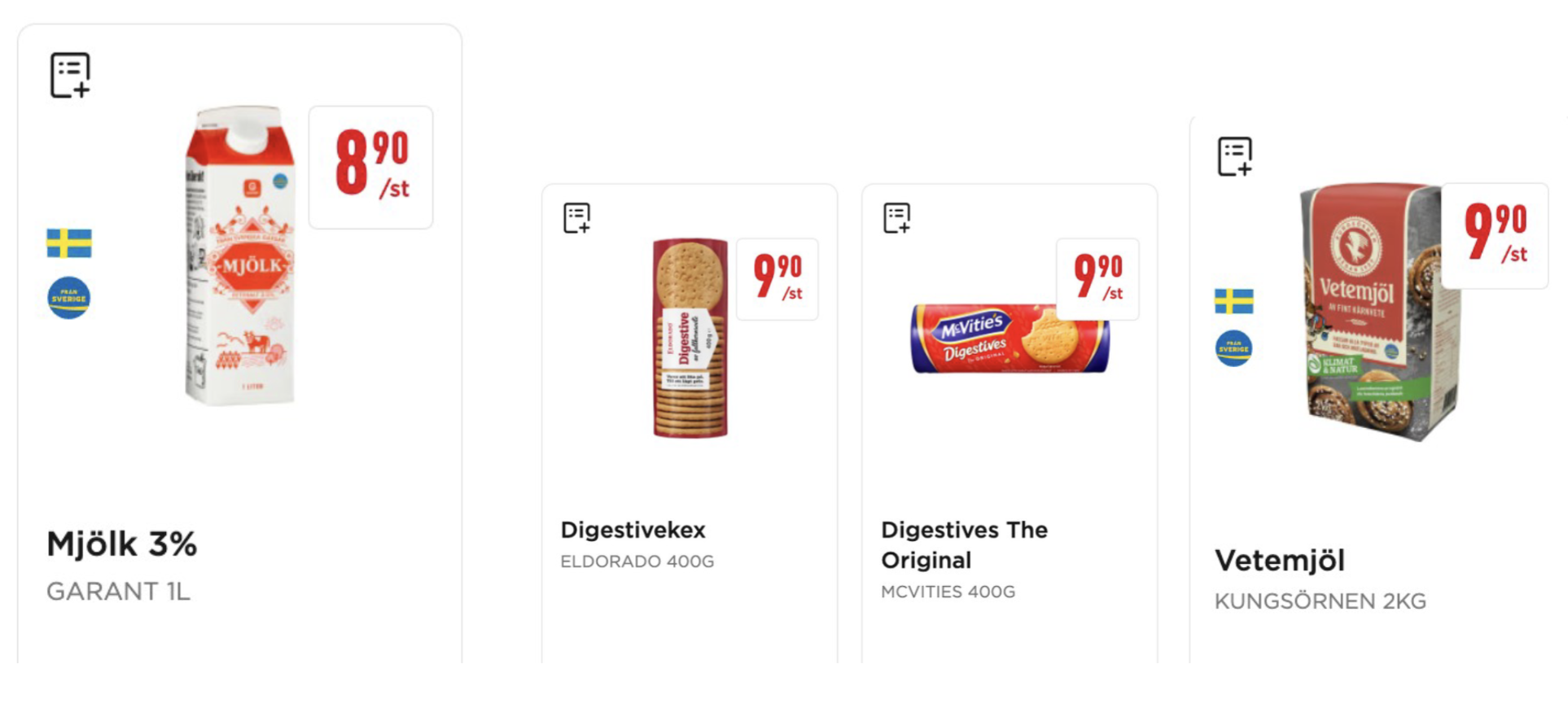 – Priserna är extremlåga och dom verkar inte ge sig. Röd Garantmjölk för 8,90/liter, Makaroner 8,50 kr, Rågsikt 9,90, Heinz ketchup 17,90, Rydbergs Potatisallad 400 gram 9,90 kr, medan samma potatissallad 200 gram kostar 14,90. Det är helt galet, säger Ulf Mazur, vd och grundare av Matpriskollen.